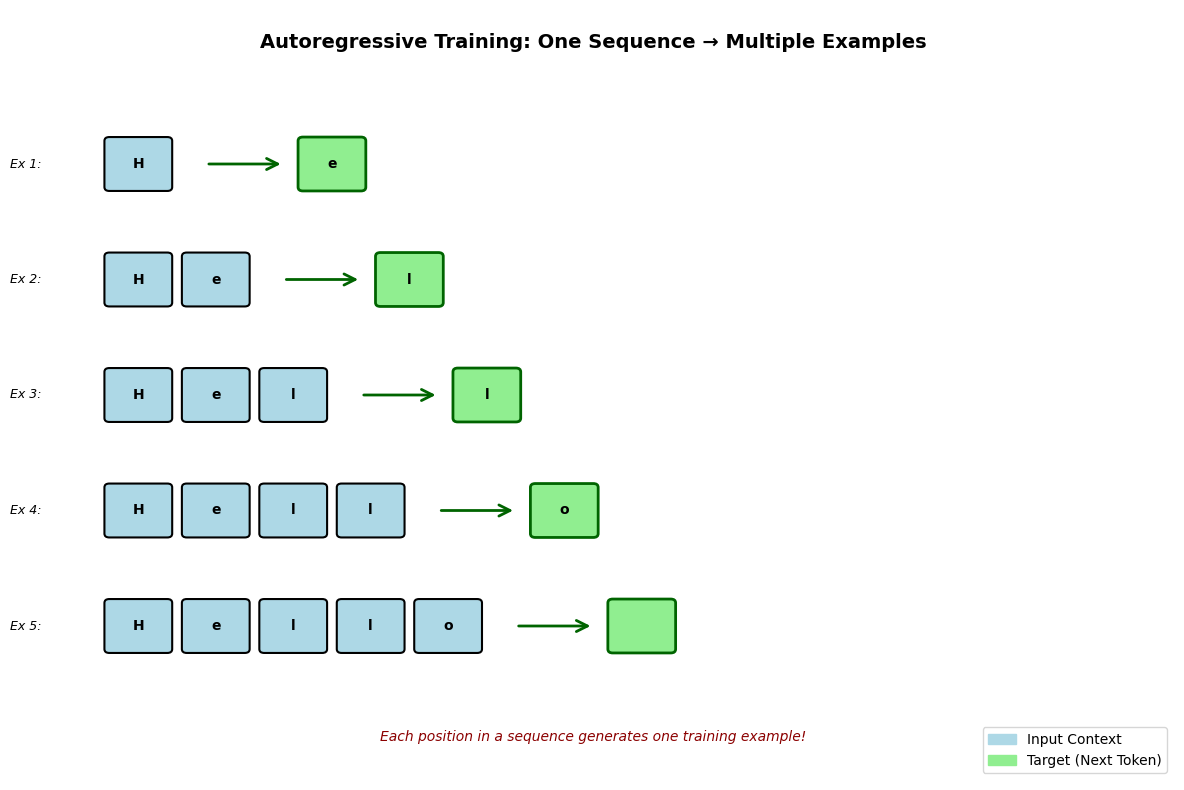 For the string “Hello”, here’s how the autoregressive training creates examples: