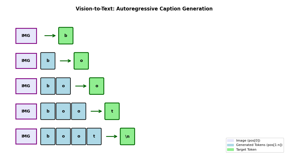 For example, an image of a boot paired with caption tokens for “simple boot” will predict “simple boot”. This way, the model learns to generate captions autoregressively, just like it generates Shakespeare text.
